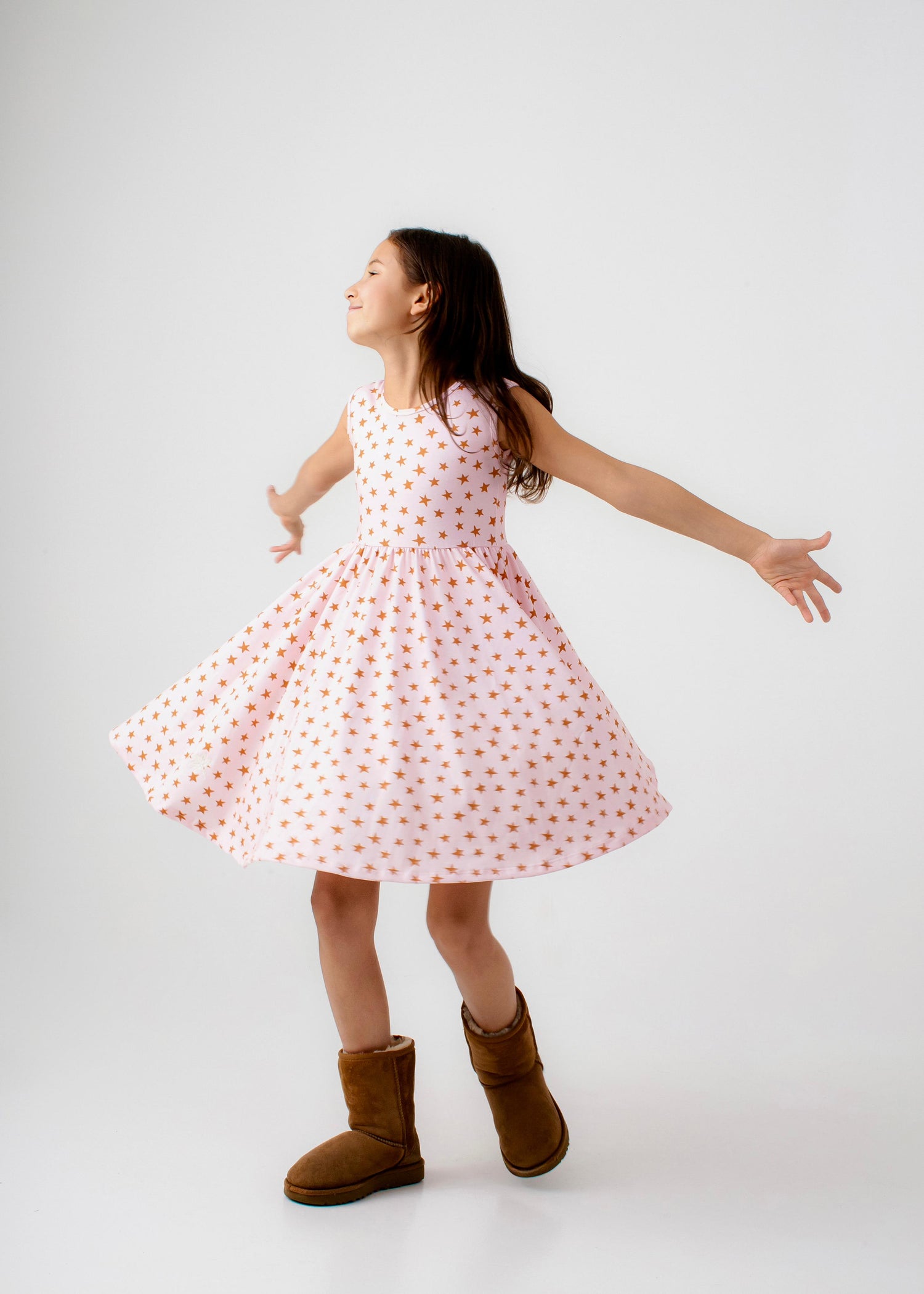 VESTIDO BALLET ESTRELLAS ROSA MANGA SISA